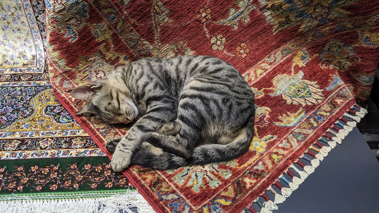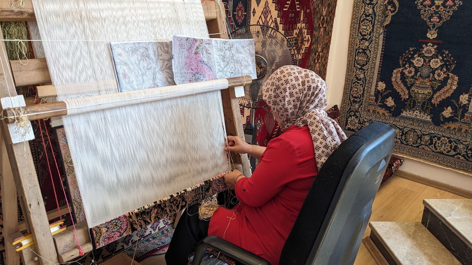 Как оказалось, традиционные ковры бывают не только персидские но и турецкие. Притом по словам местных жителей последние — более древней традиции и куда более высокого качества. Делают их не только из шерсти но и из шелка. Шелковые ковры ценятся выше.