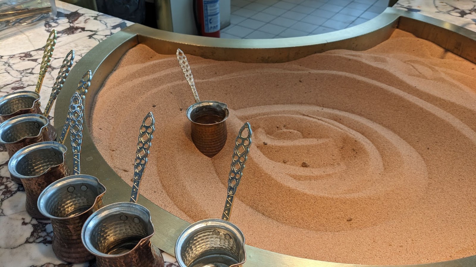 Все остальные виды местного кофе не подлежат употреблению, так что даже как-то раз пришлось искать Старбакс, но кофе по-турецки возмещает потерянное сполна! Небольшая чашка очень крепкого заваренного в турке на горячем песке кофе быстро заряжает дух, придает энергию.